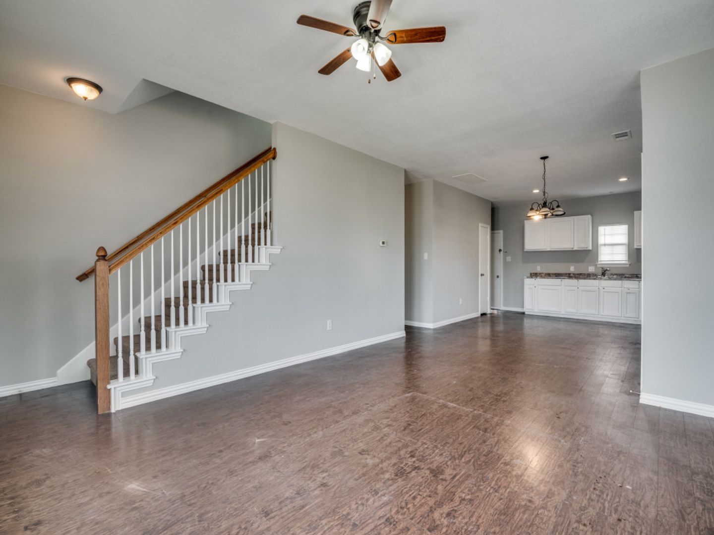 One side of the Duplex is available. Large downstairs living and dining area. Open concept with the kitchen at the rear of the downstairs. Stairwell leading upstairs to bedrooms. Lots of storage. The master bath features a double sink. Home is close to everything. Dining, shopping, entertainment., etc... The community has a basketball court and playground. Garland ISD. Come and make this one your own.