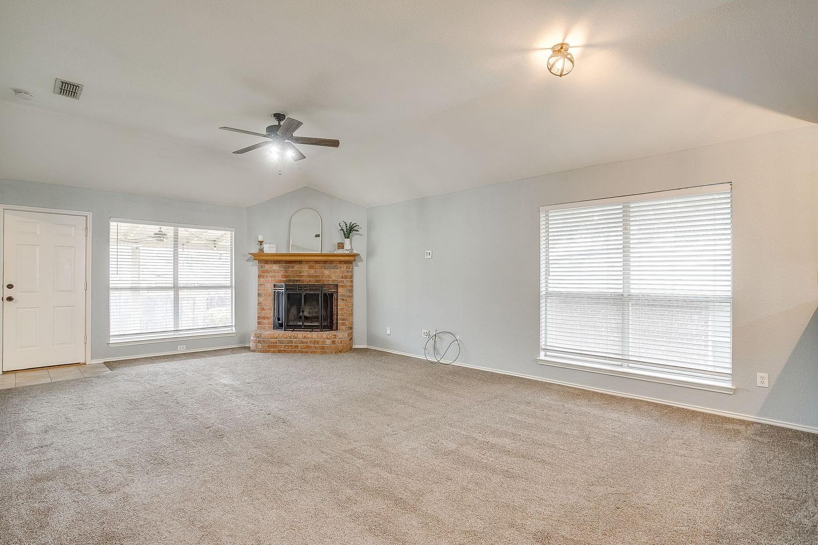 An amazing, well-maintained single-story brick home in the Eagle Mountain-Saginaw ISD is ready for new tenants. You will love this 3-bedroom, 2-bathroom home with a great open floor plan, where the living, kitchen, and dining all flow together. The home has tons of amazing features. The brick wood-burning fireplace is the focal point of the carpeted living area. Kitchen features modern updates, including a stainless steel stove-oven, dishwasher, built-in microwave, and a deep farm sink. The home features a split-bedroom floor plan, ensuring maximum privacy. The spacious master suite is located away from the two secondary bedrooms. The home has ceiling fans and a smart thermostat to help keep the electric costs down. Large covered back patio with spacious fenced backyard. Easy access to everything: top-rated schools, dining, shopping, and entertainment. Must see to appreciate.