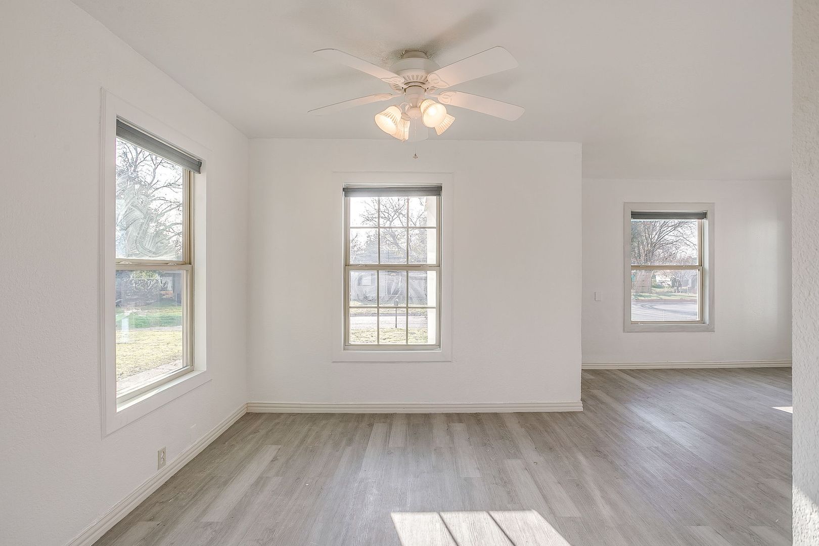 Welcome Home. This is a great 2-bedroom, 1-bath home that has been wonderfully updated. The front porch welcomes you home—luxury Vinyl plank throughout the house and classic black and white tile in the bathroom. The home has a large living area with a ceiling fan, spacious bedrooms, and a kitchen area with storage and all appliances. Energy-efficient windows help with utilities. A stackable washer and dryer area is located in the kitchen for ease. Brand-new bathroom with a fantastic, spacious shower, and storage. Large backyard for those family gatherings. Castleberry ISD. Located near the River District. Easy access to shopping, dining, entertainment, schools, etc. Come and make this one your own.