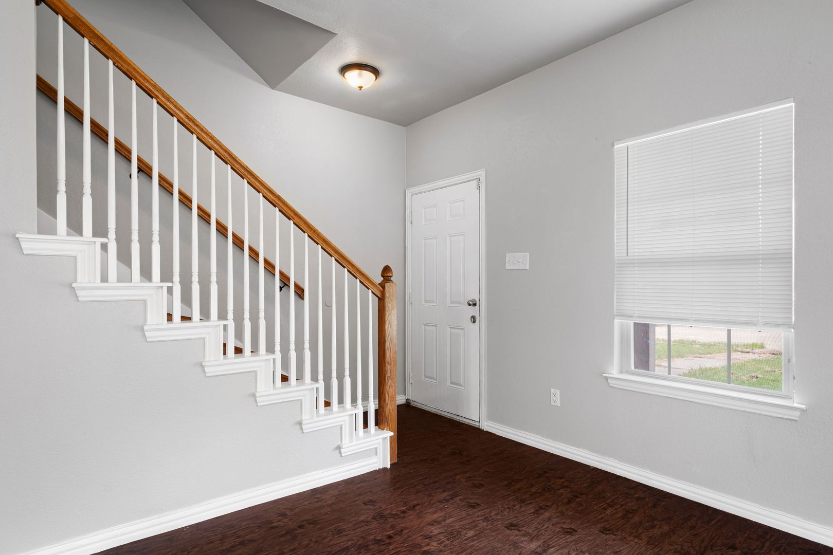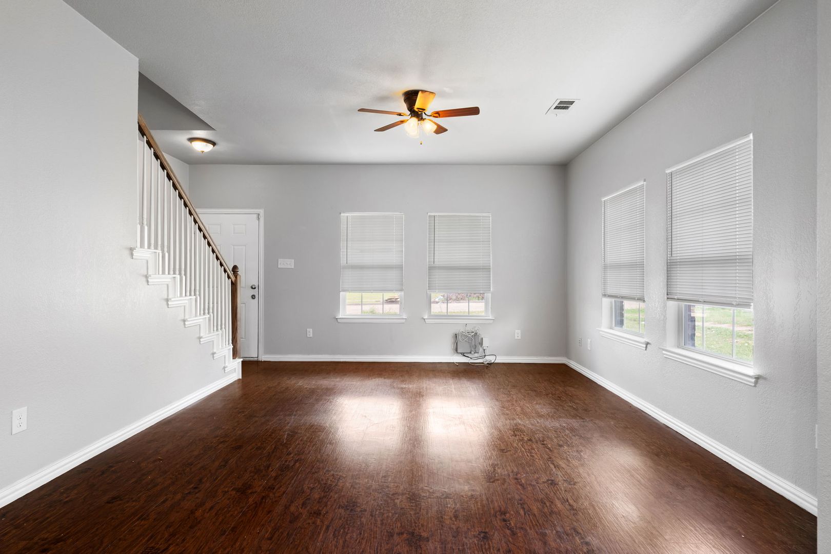 One side of the Duplex is available. Large downstairs living, kitchen, and dining area. Open concept, with the kitchen at the rear of the downstairs area. Stairwell leading upstairs to bedrooms. Lots of storage. The master bath features a double sink. Home is close to everything. Dining, shopping, entertainment, etc... The community has a basketball court and playground. Garland ISD. Come and make this one your own.