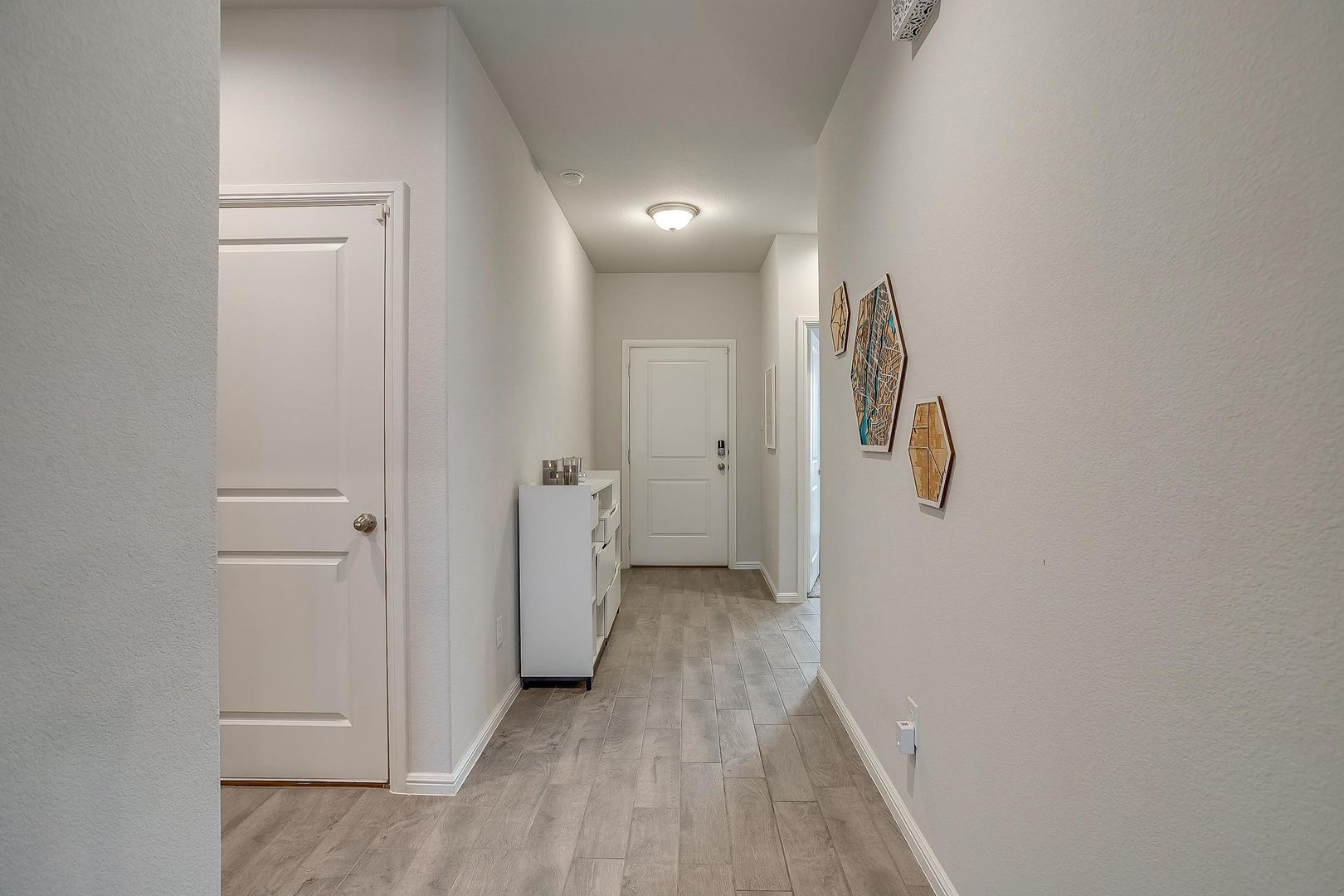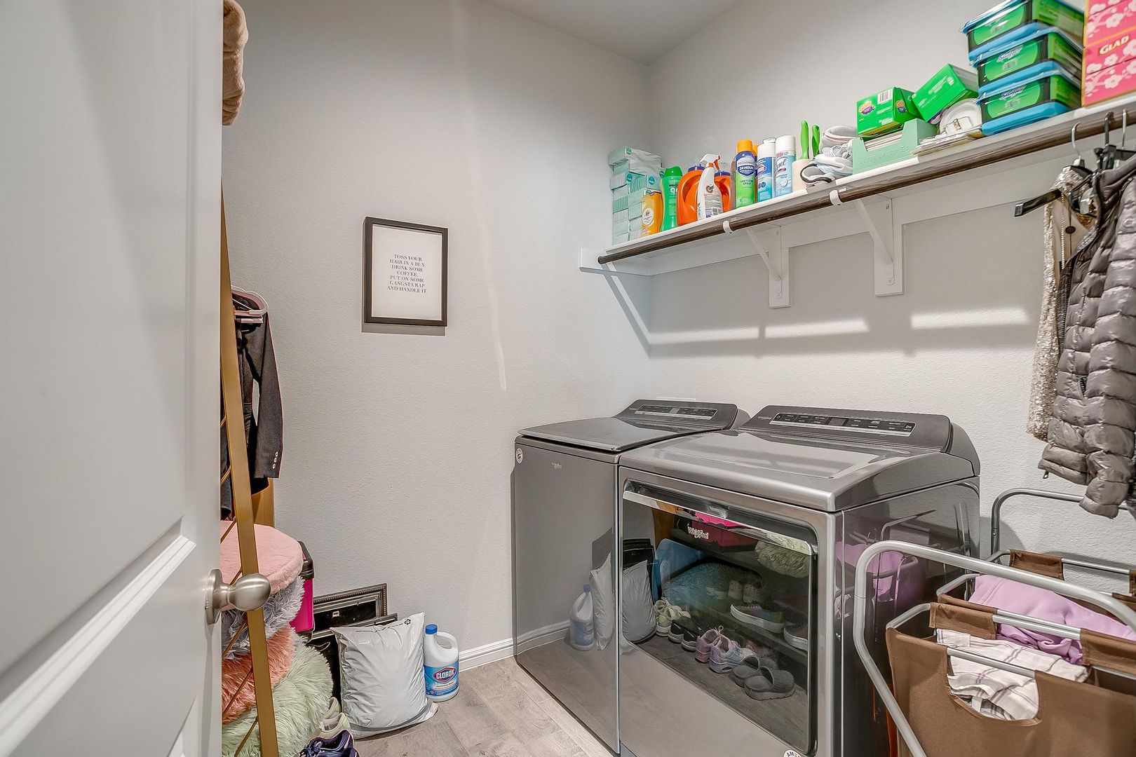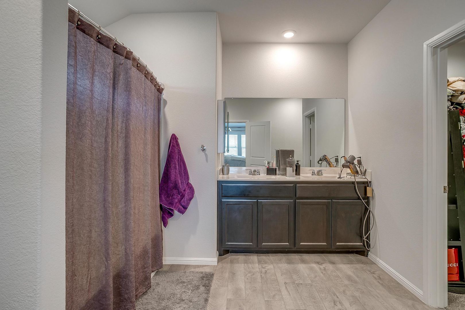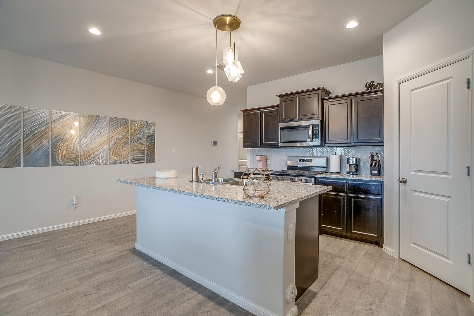 Ready for new tenants. Beautiful wood floors from entry through the family room. Classic dark wood cabinets. Lots of kitchen storage, kitchen island, gas appliances and an amazing pantry. This open floor plan flows from the kitchen to the nook into the family room. The gorgeous kitchen features stainless steel appliances. The breakfast nook has bright windows. Open to the kitchen and breakfast nook is the spacious family room filled with more natural light. The master suite is nestled beside the family room. The master bath is spacious, featuring a dual sink vanity and separate tub and shower. Adjoining the master bath is the master closet with plenty of space. The secondary bedrooms are in their hallway, bath, and linen closet! Easy access to shopping, dining, schools, entertainment, etc...